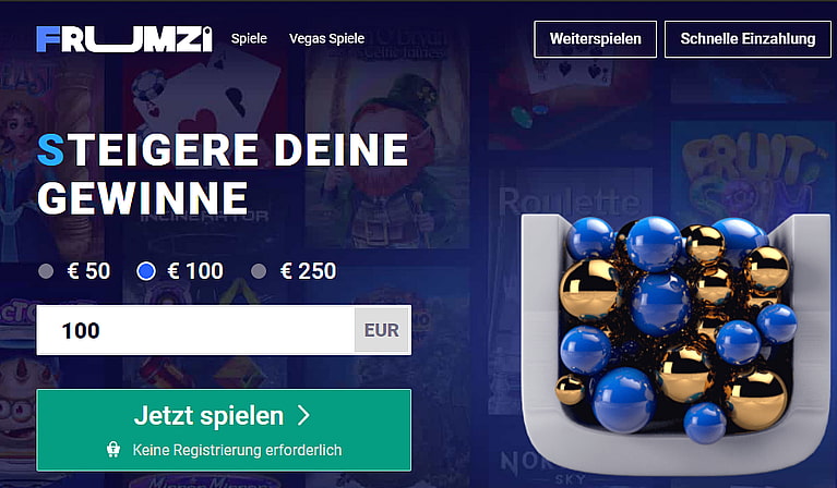 Übrigens. Der Spielanbieter hat die neuen deutschen Gesetzgebungen nicht oder noch nicht umgesetzt. Eure Game-Auswahl ist in der Praxis, dank anderer Kategorien, also noch umfangreicher. Nicht nur die Automatenfans werden in der Frumzi Spielbank fündig.
